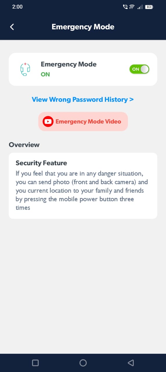 Front/back camera, time and location—auto-shared with trusted contacts.