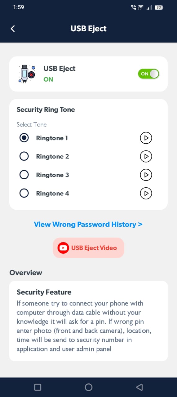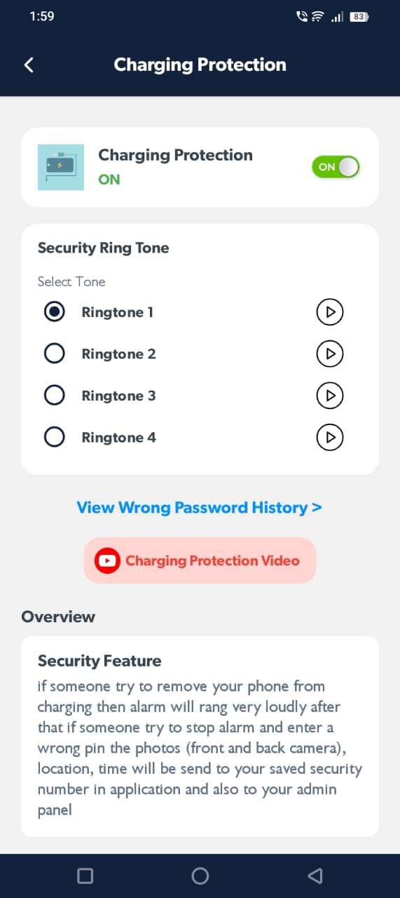 Loud deterrence if your phone is moved or unplugged without authorization.